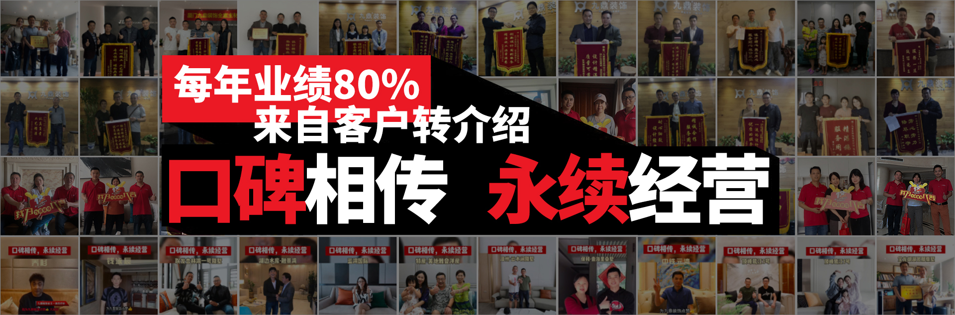 九鼎裝飾秉承“口碑相傳,永續(xù)經(jīng)營”的經(jīng)營理念,力求達(dá)到“設(shè)計零缺憾、施工 零缺點、材料零抱怨、品質(zhì)零投訴”的“四零”服務(wù)